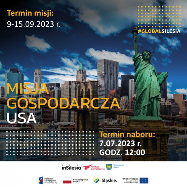 Do 7 lipca trwa nabór przedsiębiorstw z województwa śląskiego na misję gospodarczą do USA (New York, Connecticut), która odbędzie się w dniach 9-15 września 2023 r. Organizatorami są Fundusz Górnośląski oraz Urząd Marszałkowski Województwa Śląskiego.